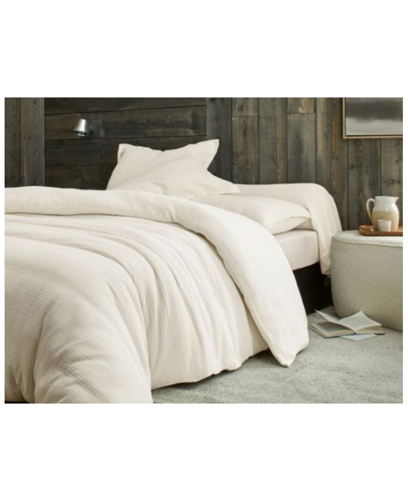 Cette nouvelle matière innovante se compose de 2 couches de voile de coton, tissées entre elles. Ultra douce, elle offre un bel aspect gaufré et moelleux à souhait. Son petit plus ? Elle ne nécessite aucun repassage. Agréable en été comme en hiver, cette matière aérienne s'adapte au fils des saisons.
