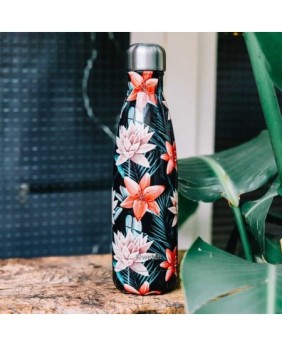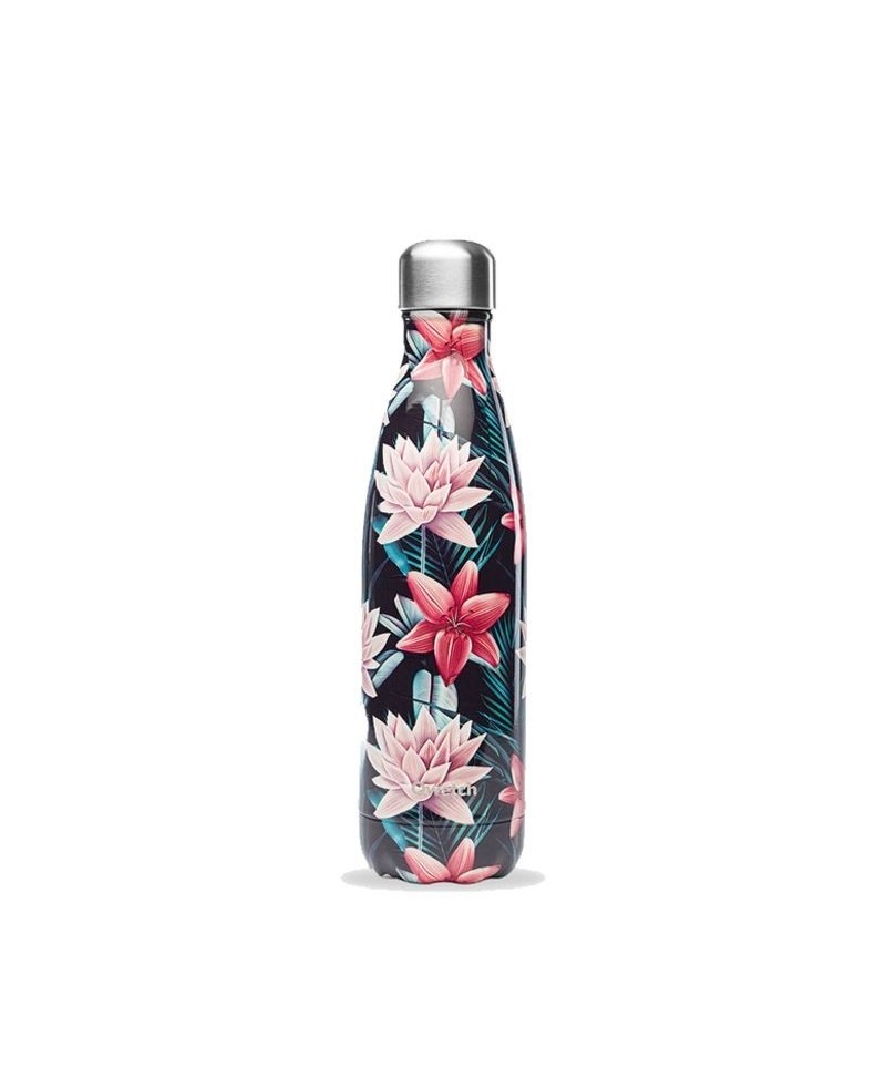 La bouteille isotherme en inox Qwetch Tropical Fleur Noire 500 ml est l'alliée idéale et design pour transporter vos boissons chaudes ou froides en les conservant à bonne température !